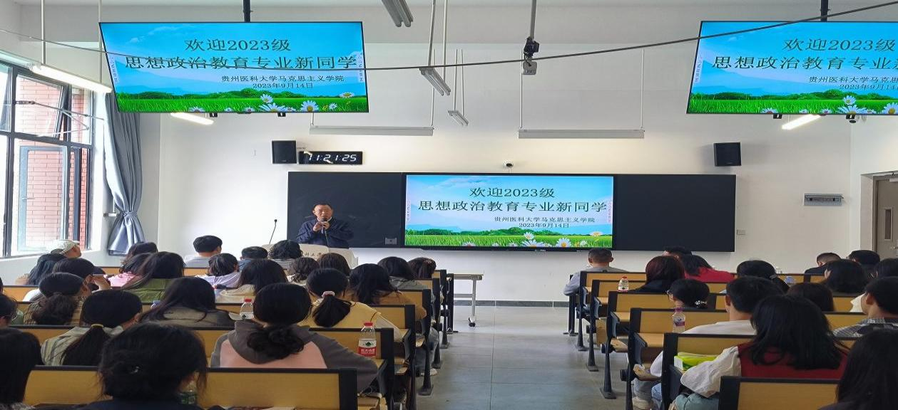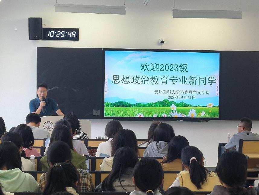 杜凯致辞,表达了对2023级新生的欢迎与祝愿。他指出,青年学生作为时代新人,要了解党和国家对青年的殷切期望,担当起民族复兴大任;作为贵医人,要了解贵医历史,传承贵医文化,发扬“诚於己,忠于群,敬往思来”的校训;作为马院人,要在马爱马、在马研马、在马信马,理想信念坚定、政治素养过硬。他强调,同学们要以“信仰、担当、奋斗”为主线,刻苦学习,练就过硬本领,将贵医精神和爱国主义传统融入血脉中,化作报效国家和为民服务的实际行动,努力成长为马克思主义的忠实信仰者、坚定践行者。随后,他宣读了2023级新生学业导师名单。