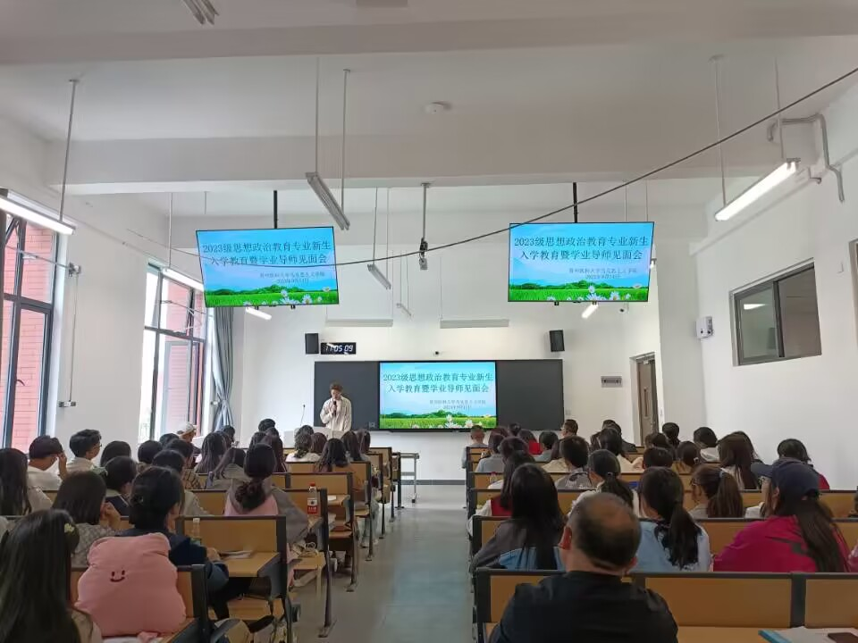 为进一步加强新生入学教育工作,坚持立德树人根本任务,教育引导新生扣好人生第一粒扣子,9月14日上午,今年会在人文L103教室召开2023级新生入学教育暨学业导师见面会。学院党委书记黄鑫权、院长杜凯、正处级组织员陆法钢、党委委员、教管科副科长凌富亚、辅导员、无教学任务的学业导师、2021级思想政治教育专业学生代表、2023级思想政治教育专业全体学生参加会议。会议由学院党委副书记兼纪委书记王万江主持。