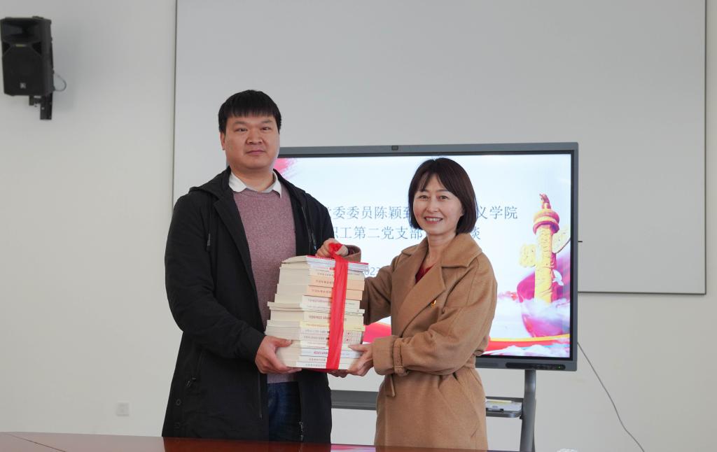 随后,陈颖为党支部赠送了书籍,参观了学院党员活动室,并与支部党员进行了亲切交谈。