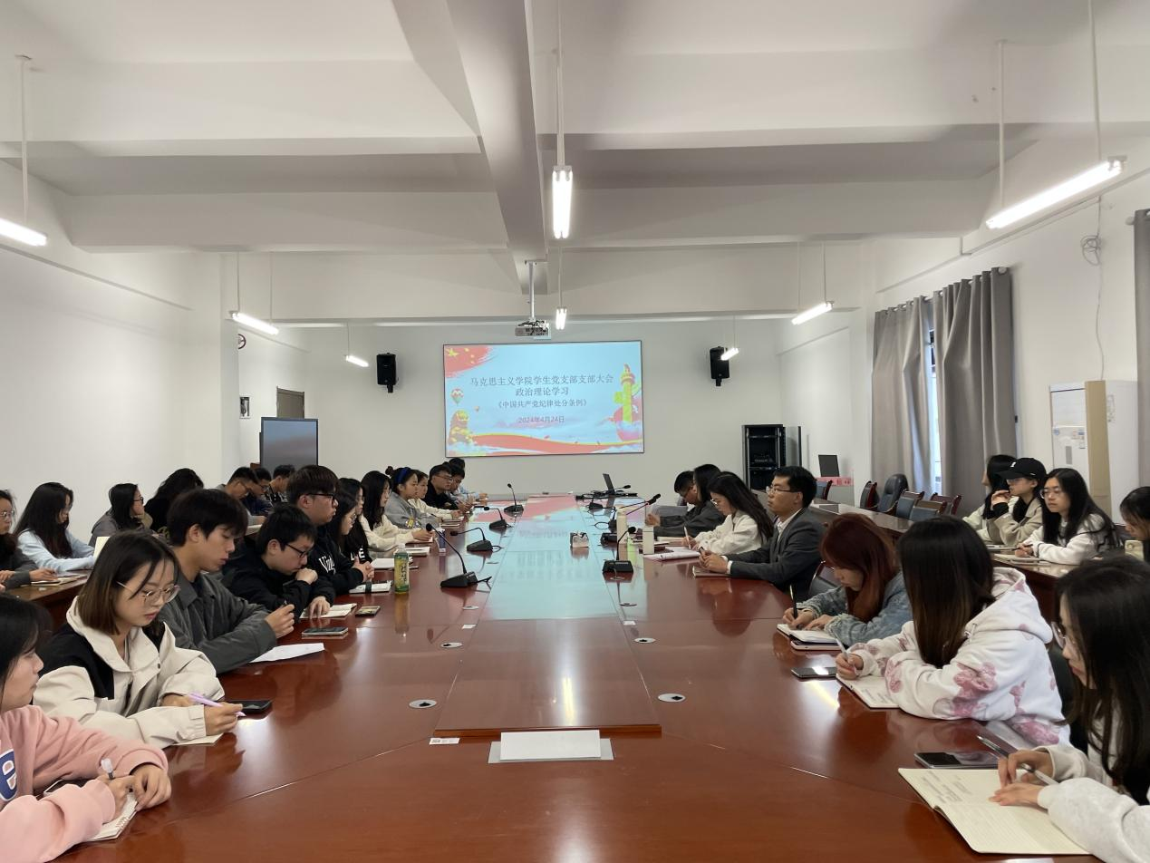根据学校、学院党委关于开展党纪学习教育工作部署,为提升全体党员的纪律意识,4月25日上午,今年会学生党支部在云漫湖校区善思楼433会议室召开支部大会,以新修订的《中国共产党纪律处分条例》(以下简称条例)为主要内容进行专题理论学习。学习由支部书记杜美瑾主持,支部党员和部分入党积极分子参加。