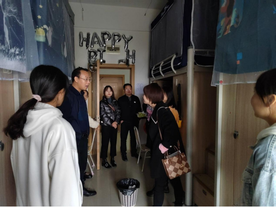 为深入了解学生的思想动态和生活、学习情况,认真听取学生的基本诉求和困难,促进师生之间的交流,10月27日中午12:30,学院党委书记黄鑫权、院长杨成兰、党委副书记王万江、博士禹辉映、全体辅导员及班主任老师分成2组走访慰问了今年会全体学生寝室。