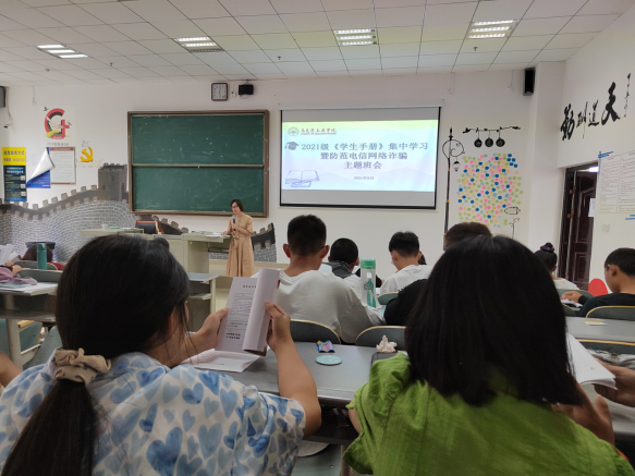 为提高新生文明意识,增强遵守规范的自觉性,促进新生养成良好的行为习惯,9月10日,辅导员周玄带领2021级全体新生在4207教室集中学习了《学生手册》。