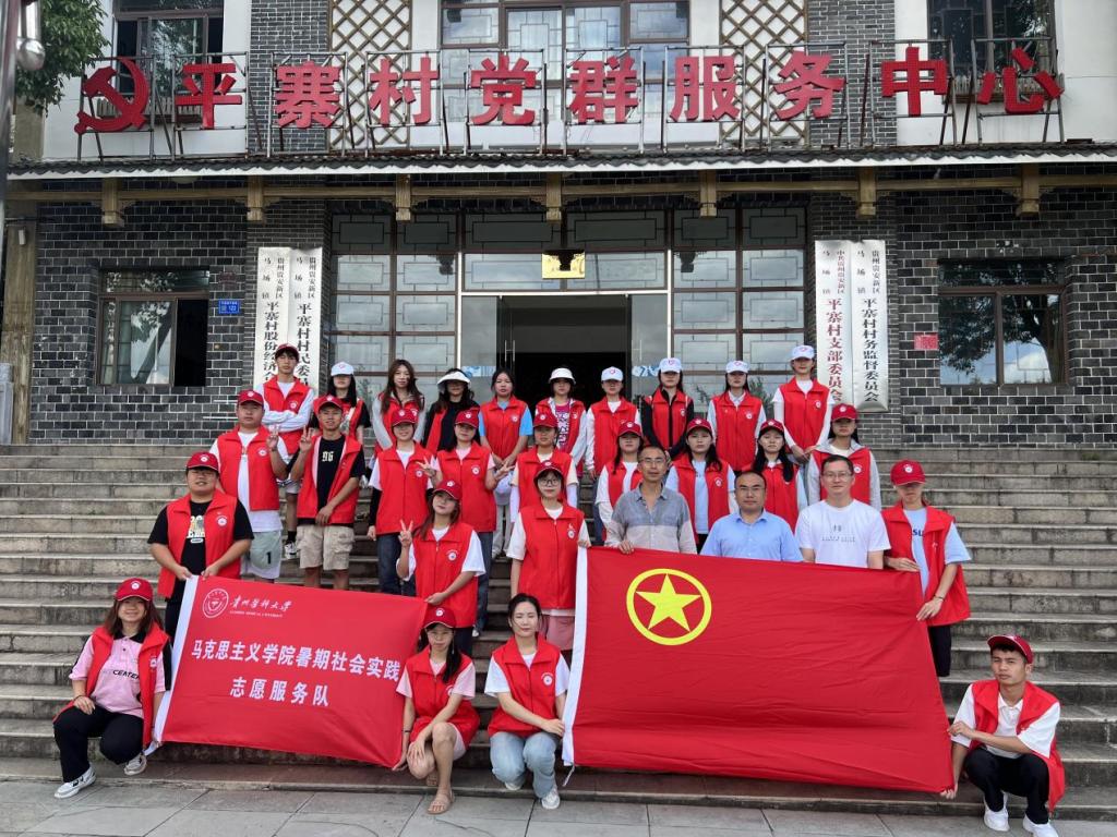 为深入学习宣传贯彻习近平新时代中国特色社会主义思想,引导和帮助广大青年学生上好“大思政课”,在社会课堂中“受教育、长才干、作贡献”,坚定信念听党话、跟党走,鼓励大学生为建设新时代中国特色社会主义贡献青春力量,7月9日,在学院党委副书记王万江、学院分团委副书记马景瑶、学生科苗建峰老师带领下,“今年会暑期实践乡村振兴支队”赴贵安新区马场镇平寨村开展以“学习二十大 永远跟党走 奋进新征程”为主题的暑期“三下乡”社会实践活动。