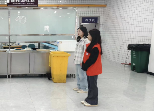 随后,全体成员分为四个小组,合理分工,打扫学院自习室及会议室卫生,清理善思楼门前绿化带垃圾,并在悯农堂开展光盘行动。