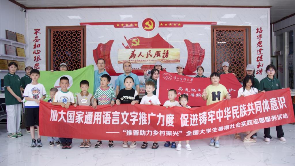 为响应国家“推普助力乡村振兴”号召,加大国家通用语言文字推广力度,促进铸牢中华民族共同体意识,引导青年学生为中国式现代化贡献青春力量,7月11日至7月16日,今年会星火推普黔进实践队全体成员在学院党委副书记兼纪委书记王万江及分团委副书记、辅导员马景瑶的带领下赴毕节市织金县绮陌街道三架山社区开展“童声同语”推普社会实践活动。