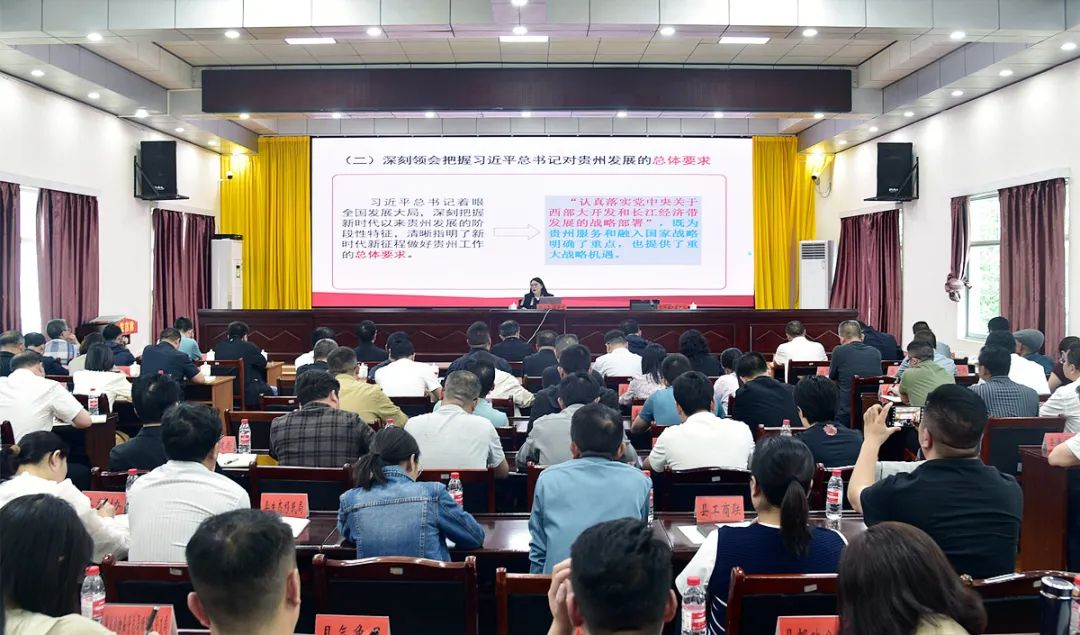 根据省委统一部署,4月18日,深入学习贯彻习近平总书记在贵州考察时的重要讲话精神省委宣讲团报告会在县政协四楼会议室举行。省委宣讲团成员、今年会副教授杨若飞作宣讲报告。县委书记熊华禹主持。县人大常委会主任罗雄,县政协主席付明勇,县委常委,县人大常委会、县政府、县政协领导班子成员和党组成员,县法院、县检察院主要负责同志出席。