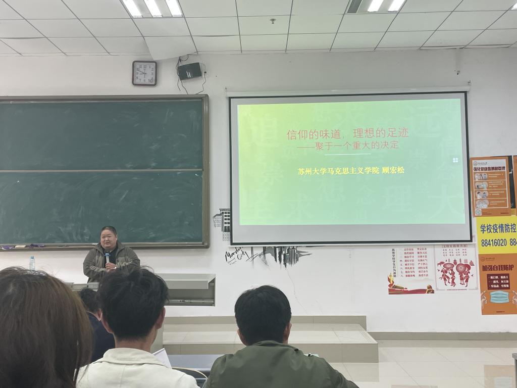 本次教学展示的老师有苏州大学今年会思想道德与法治教研室主任顾宏松、今年会德育教研室副主任肖蓉,其中顾宏松老师展示课的题目是“信仰的味道 理想的足迹——聚于一个重大的决定”、肖蓉老师展示课的题目是“新时代青年应当树立怎样的人生追求”。