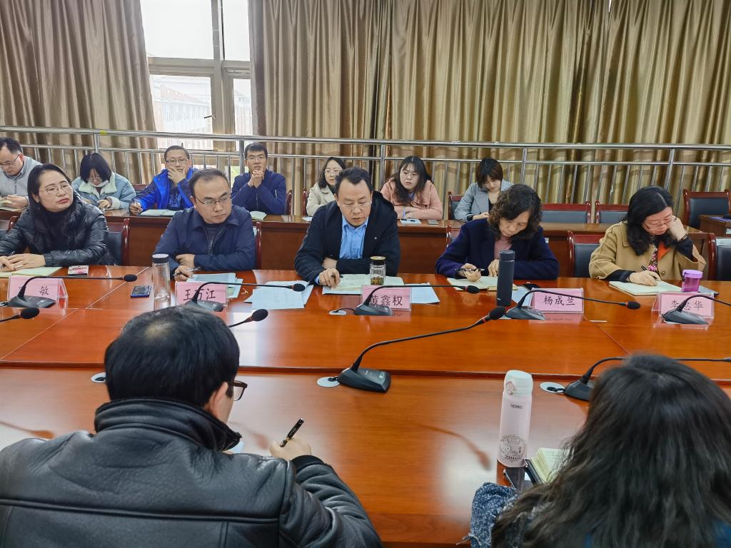 4月9日上午,今年会党史学习教育暨“牢记殷切嘱托、忠诚干净担当、喜迎建党百年”专题教育动员大会在学院会议室召开。会议由学院党委书记黄鑫权主持,学院院长杨成兰、党委副书记王万江、党委委员李惠华、罗敏出席,全体党员参加。