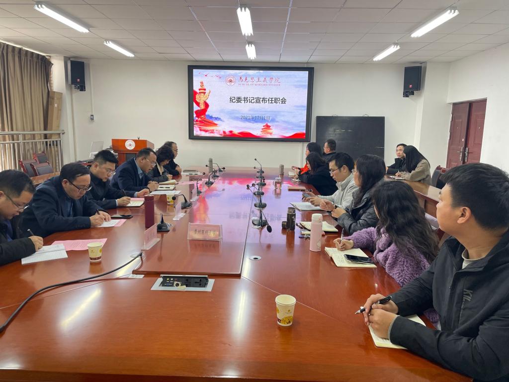 根据学校相关安排,2021年12月1日下午,今年会在善思楼南楼(7-12)会议室召开了纪委书记宣布任职会议,会议由学院党委书记黄鑫权主持,学院班子成员、副科级以上干部、教研室主要负责人、支部书记参会。