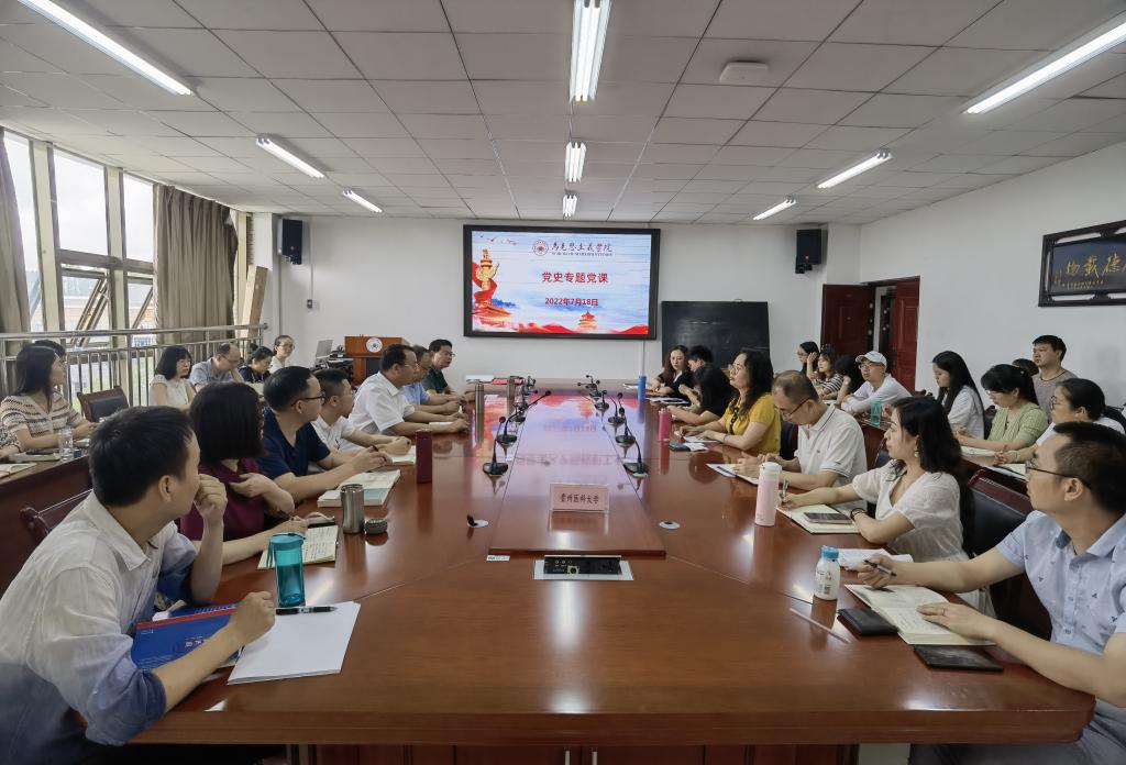 2022年7月18日,为了更好地传承党的光荣传统,加强学院全体党员的理想信念教育,今年会党委副书记王万江同志以“赓续红色血脉,传承革命精神”为主题,从党的百年光辉历程、中国共产党的初心和使命、中华民族伟大复兴三个方面为学院全体党员教师讲述了一次精彩的党课。