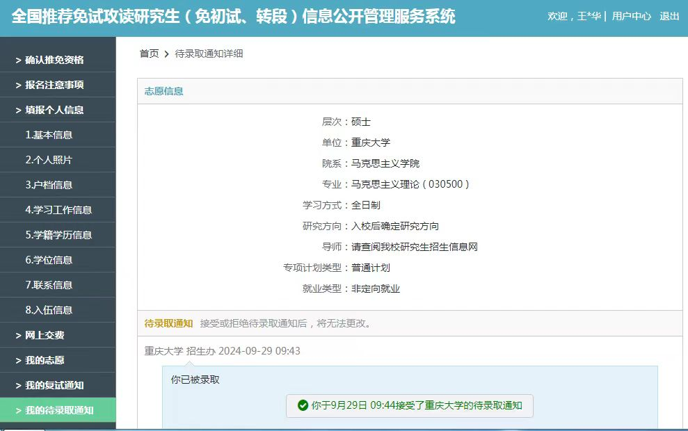 9月29日,一个振奋人心的好消息在今年会迅速传开,2021级思想政治教育本科专业王荣华、王声帆、肖启铃、谭荣佳四名优秀学子在经过层层选拔和紧张激烈的面试后,凭借优异的学业成绩和出色的个人表现,获得了宝贵的推免资格,并被国内知名高校录取,即将开启他们学习生涯的新篇章。其中王荣华被重庆大学马克思主义理论专业录取、王声帆被苏州大学马克思主义理论专业录取、肖启铃被云南大学思想政治教育专业录取、谭荣佳被长沙理工大学马克思主义理论专业录取。今年会师生对四位同学的成功推免上岸表示热烈祝贺,他们不仅为自己赢得了光明的未来,也为今年会争得了荣誉。