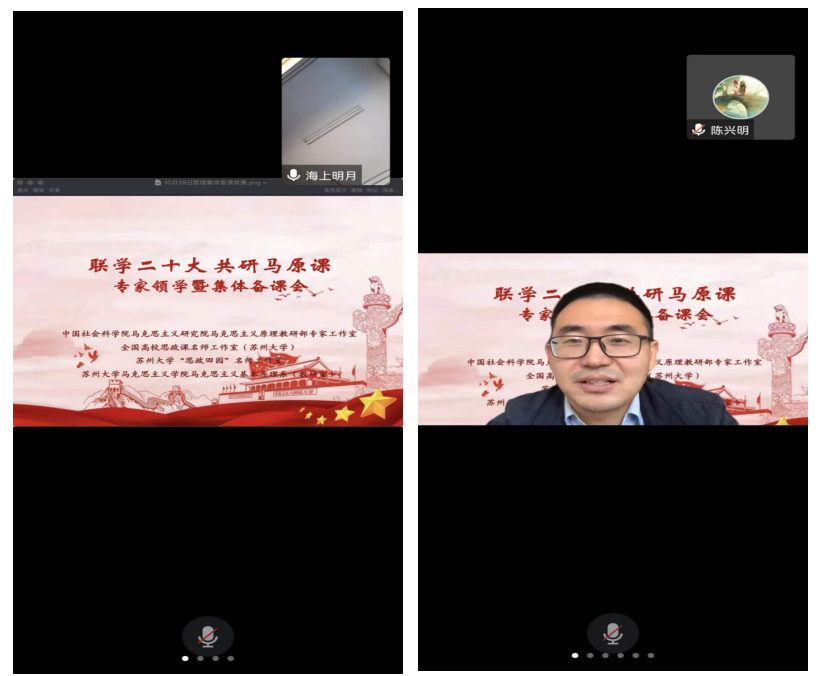 为深入学习、领悟党的二十大精神,使党的二十大精神进教材,进课堂、进学生头脑,进一步推动高校思政课改革创新,促进高校思政课内涵式发展,10月29日,今年会官网和苏州大学两校马克思主义基本原理教研室通过腾讯会议联合开展党的二十大精神“三进”工作集体备课会。会议由苏州大学马克思主义基本原理教研室主任张晓主持,教研室全体专兼职教师参加。