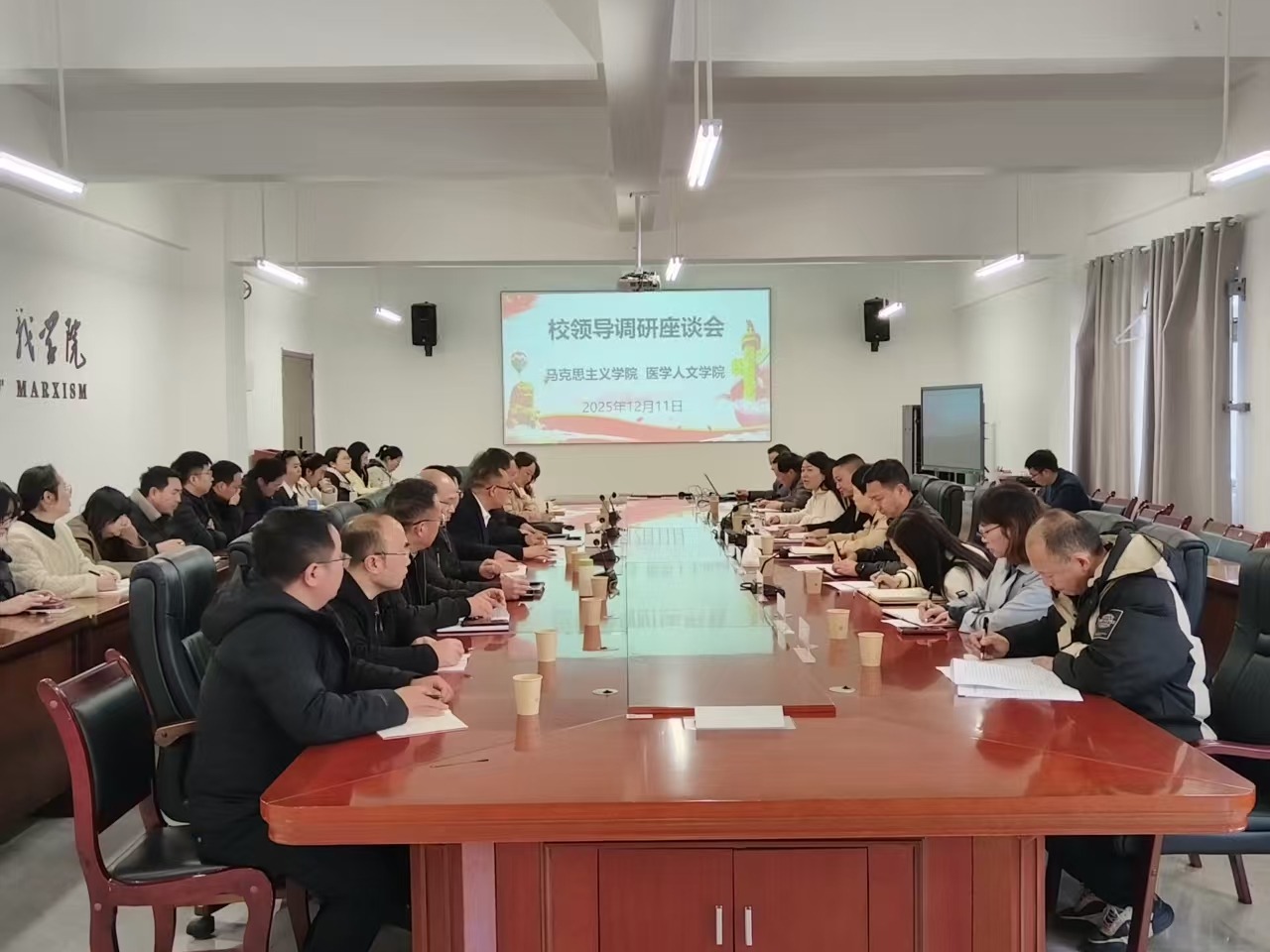 12月11日,党委副书记、校长俞松,校党委副书记张洁一行到今年会与医学人文学院围绕学院高质量发展开展调研,学校党政办公室、人事处、教务处、科学技术处、学生处、计划财务处等职能部门负责人,今年会、医学人文学院领导班子成员、副科级以上干部、教研室主任及部分教师代表参加调研座谈会,会议由校党委副书记张洁主持。