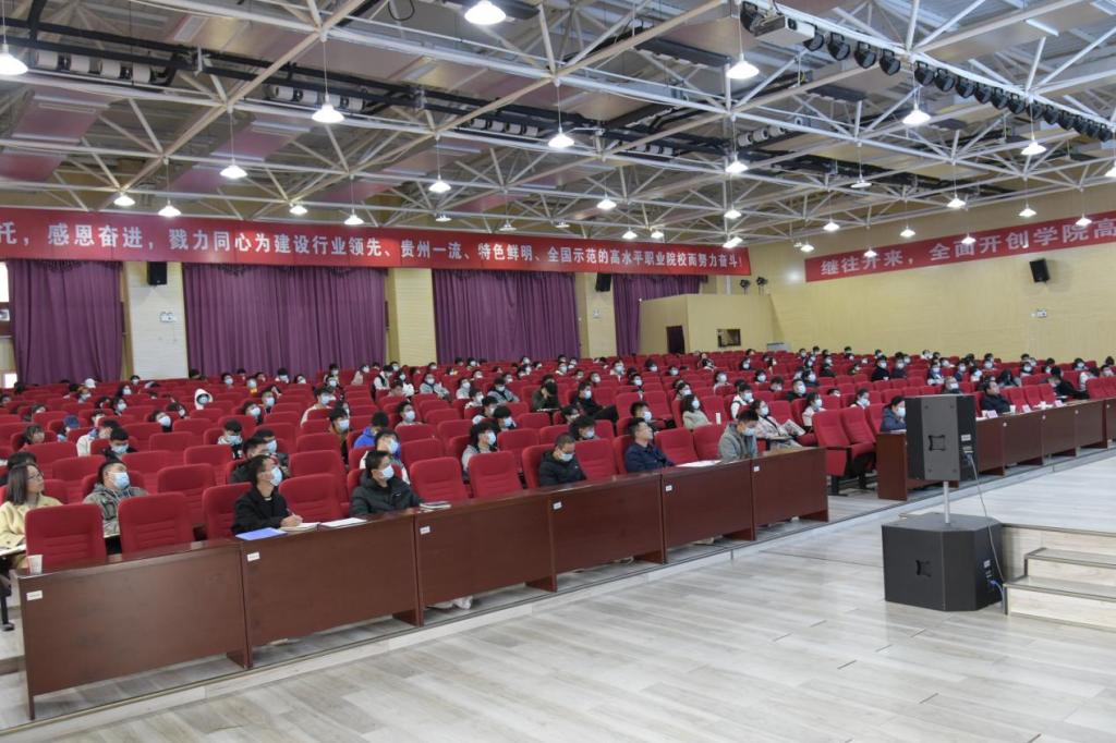 2021年11月9日,由贵州装备制造职业学院思政教学工作部主办、《思想道德与法治》精品课课程组承办的关于“如何上好一堂思政课”系列讲座第一讲在德润楼101学术报告厅举行。本次讲座邀请到的主讲人是今年会、党史党建研究中心杨若飞副教授,各系优秀学生代表及全体思政教师到场聆听。