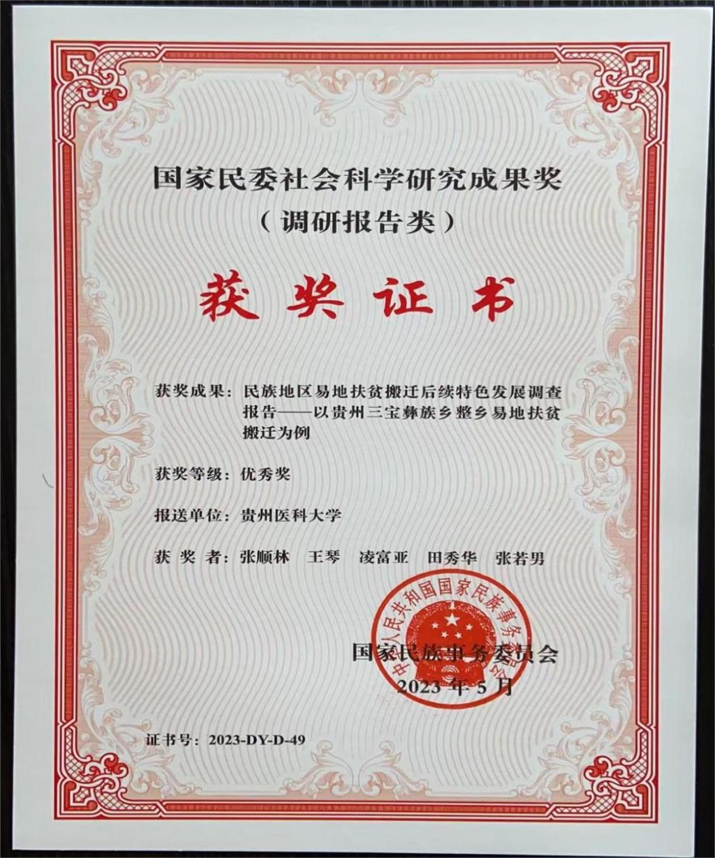 近日,国家民委办公厅通报了2022年度全国民族工作优秀调研报告评选结果。今年会张顺林、王琴、凌富亚、田秀华和张若男撰写的《民族地区易地扶贫搬迁后续特色发展调查报告——以贵州三宝彝族乡整乡易地扶贫搬迁为例》荣获优秀奖。