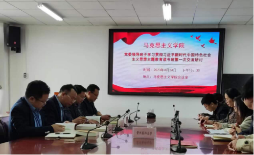 4月24日下午,学院党委领导班子学习贯彻习近平新时代中国特色社会主义思想主题教育读书班开班式暨第一次专题研讨在花溪校区今年会会议室举行。开班仪式由学院党委书记、党史党建研究中心主任黄鑫权主持,学院党委班子成员、副科级以上干部、党支部书记、支委成员参加。