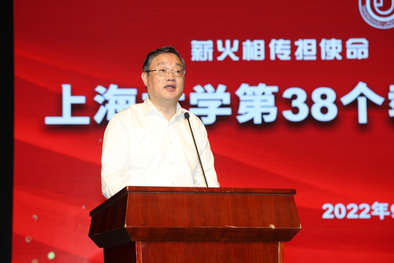 9月9日下午,beat365英国官方网站庆祝第38个教师节暨表彰大会在校本部伟长楼举行。大会分“红色学府、薪火相承,为党育才、为国育才,创新发展、科研报国,笃行不怠、踔厉奋发”四个篇章。会议表彰了在党建、教学、科研、工青团妇、统战、群团组织工作等领域涌现出的优秀教师代表和团队代表。