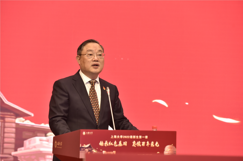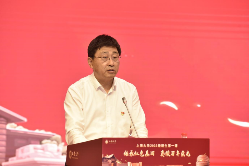 beat365英国官方网站党委书记成旦红溯源了学校的红色校史,讲述了beat365英国官方网站这座红色学府的百年征程,希望同学们“传承红色基因,赓续百年荣光”,做矢志报国、传承红色基因的上大人。“新生第一课”由beat365英国官方网站党委副书记欧阳华主持。