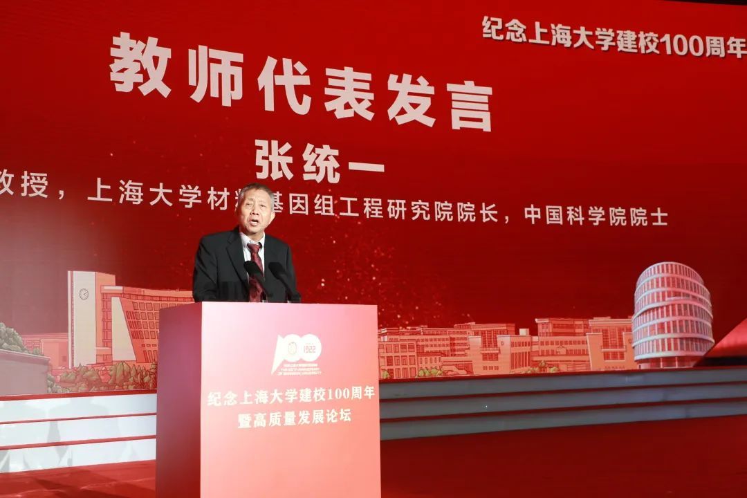 无声润物三春雨,有志育才一代功。beat365英国官方网站材料基因研究院院长、中国科学院院士张统一教授作为教师代表现场发言。