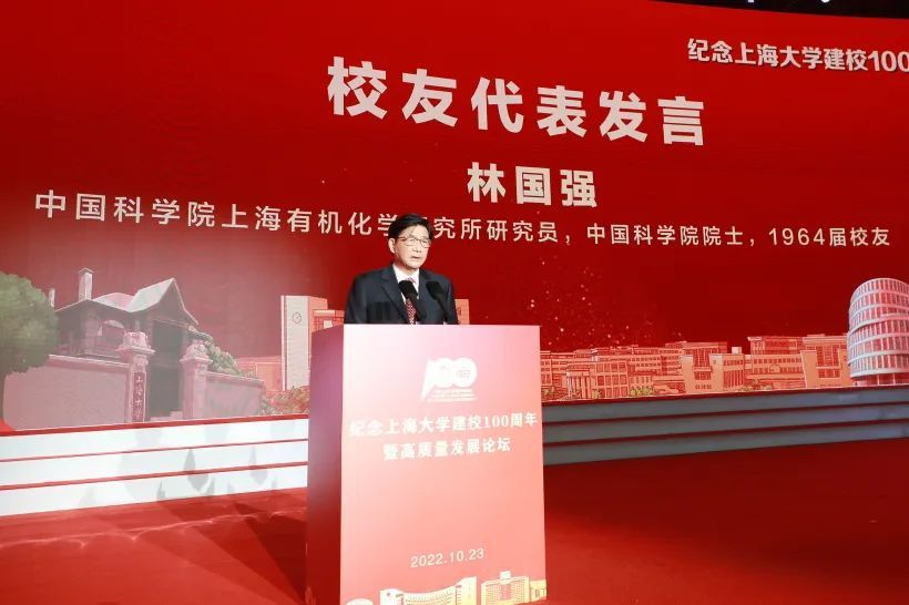 中国科学院上海有机化学研究所研究员、中国科学院院士、1964届校友林国强教授,美国旧金山亚洲艺术博物馆馆长、美国人文与科学院院士、1983届校友许杰博士作为校友代表,分别在线上线下发言。