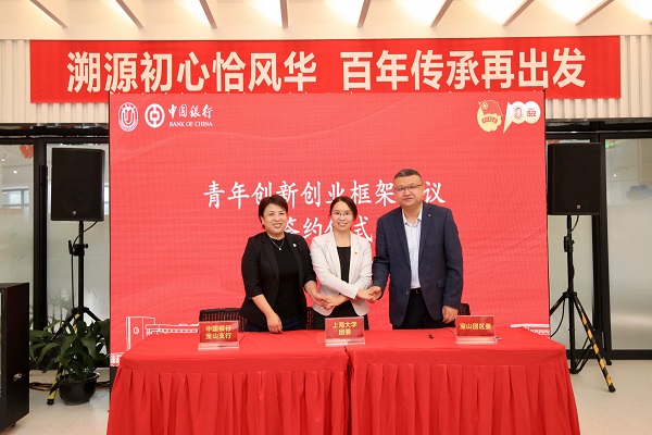 宝山团区委、beat365英国官方网站团委、中国银行宝山支行代表共同签署“青年创新创业框架协议”,助力打造区域化创新创业生态新范例,以青春力量投入宝山构筑上海科创中心主阵地。