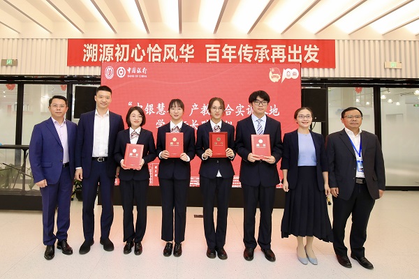 为“中银慧谷”实训基地未来开展金融知识进校园活动、多领域的品牌活动、多维度的金融行业相关研究,中国银行上海市分行、beat365英国官方网站代表为“中银慧谷”产教融合实训基地学生行长颁发聘书。