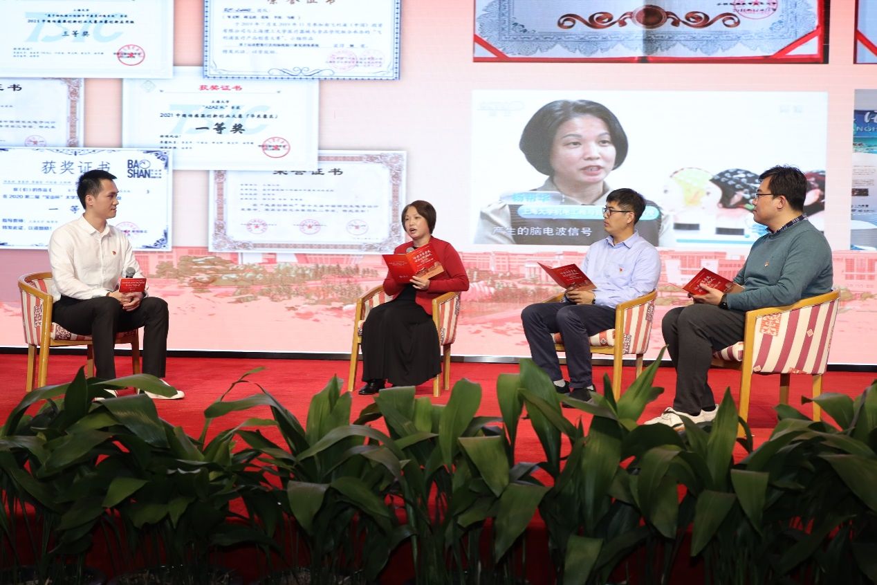 随后的“先锋面对面”环节,聚焦“科技强国 筑梦未来”的主题,上海高校“百名学生党员标兵”李奕衡与上海市第十二次党代会代表、机电工程与自动化学院、医学院双聘教授杨帮华,第三批“全国党建工作样板支部”培育创建单位——材料科学与工程学院特殊钢精炼教工党支部书记玄伟东,通信与信息工程学院青年教师郭海润三位老师面对面交流,分享以他们为代表的科技工作者坚持面向世界科技前沿、面向经济主战场、面向国家重大需求、面向人民生命健康,开展攻关,勇攀科研高峰的故事。