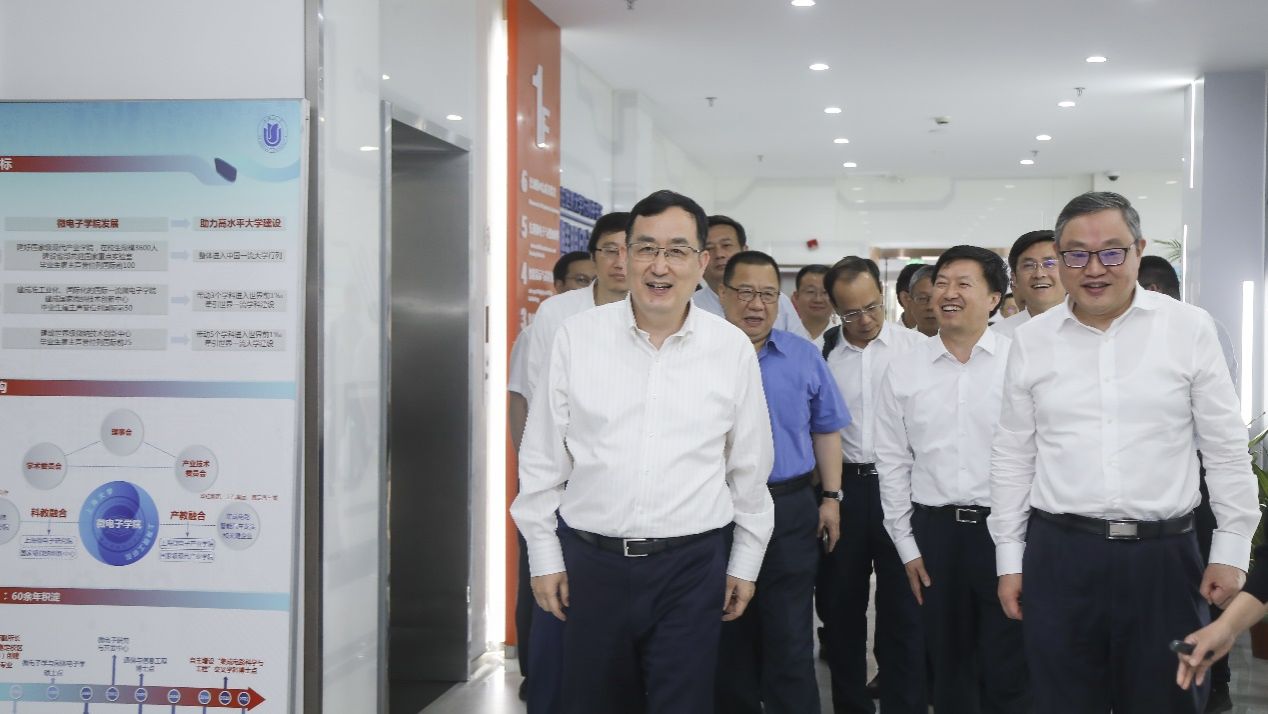 6月12日,广东省委常委、副省长王曦带队到beat365微电子学院调研集成电路人才培养情况。校党委书记成旦红、校长刘昌胜出席调研活动,上海市教委副主任王浩陪同调研。