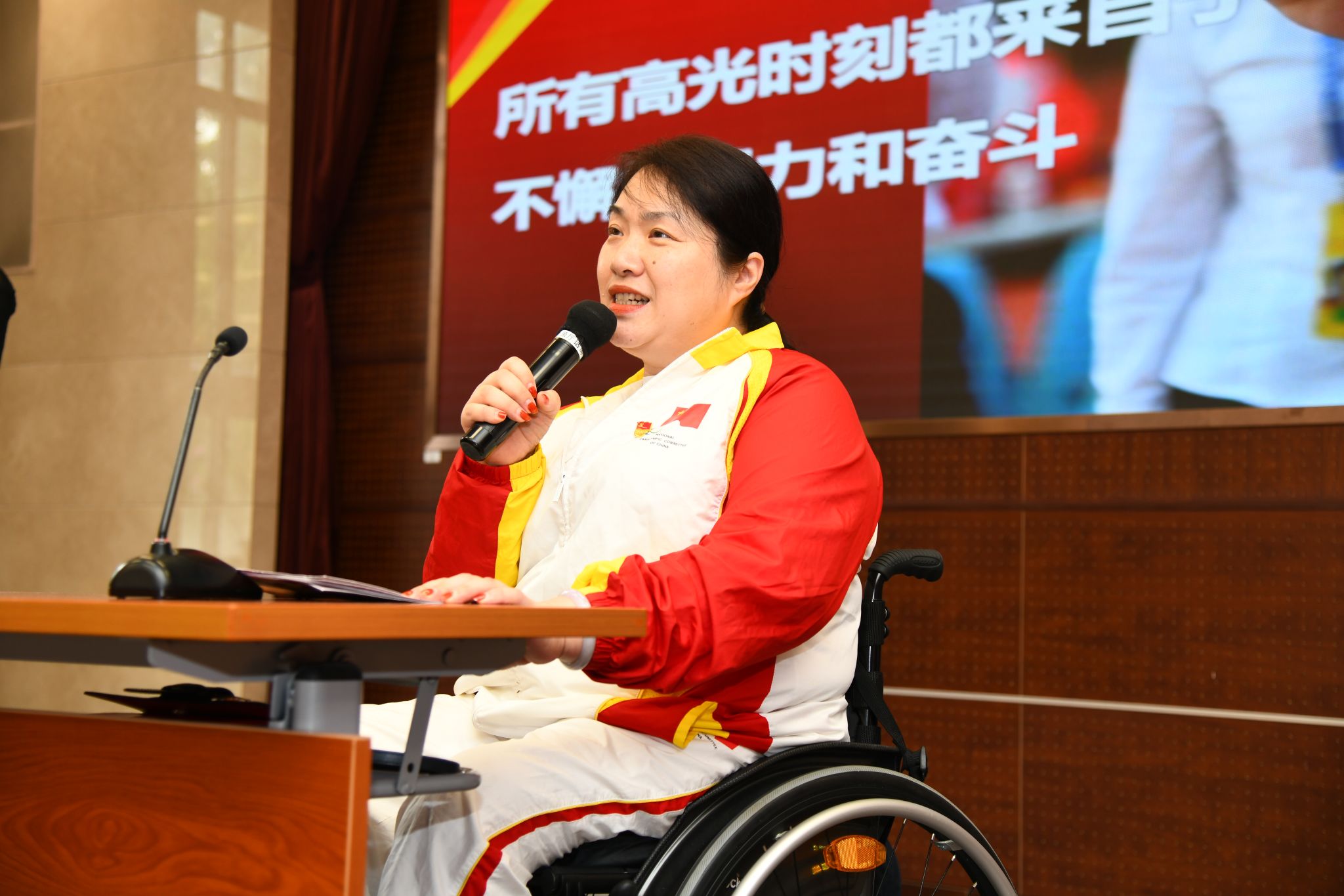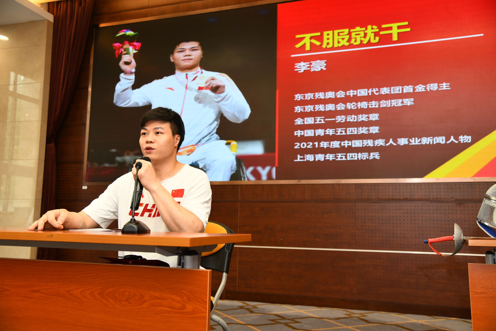 会上,残奥冠军王婷、李豪、王彦章三人依次做宣讲报告。残奥会冠军王婷讲述了自己夺冠过程以及成功转型为一名社区工作者的心路历程。轮椅剑客李豪讲述自己在东京残奥会上为中国代表团夺得首金的经历。王彦章讲述了自己夺得“大满贯”背后艰苦训练和必胜的信念,以及自己在亚残奥委会委员和社区工作者的岗位上对残疾人事业的推动。“摸到剑把的那一瞬间,男人都有的那种‘仗剑走天涯’的侠客梦一下子就被激活了。”“放下,不是放弃。”“人生没有退路,轮椅击剑更没有!”“倒下去了,就是狗熊,带着血泪爬起来了,就是冠军!”“每一粒微光,都有燃烧的使命。”“没有人设标签,人活着还不如一部手机”……三名残奥冠军妙语连珠,一波稳定输出,让现场观众笑中带泪,泪了又笑,也让beat365英国官方网站的师生们更加了解和尊敬这支多次为国争光、为上海添彩的残奥冠军队伍。
