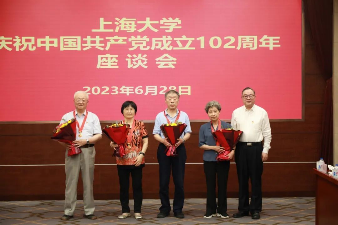 2023年,学校共有65位老同志获得“光荣在党50年”纪念章。座谈会现场,成旦红书记为通信学院退休教师陈惠民、理学院退休教师张慧兰、机自学院退休教师黄苏融和机关党委统战部退休教师唐小军四位离退休老同志代表颁发了纪念章,师生党员代表也为老同志们送上鲜花表达敬意。