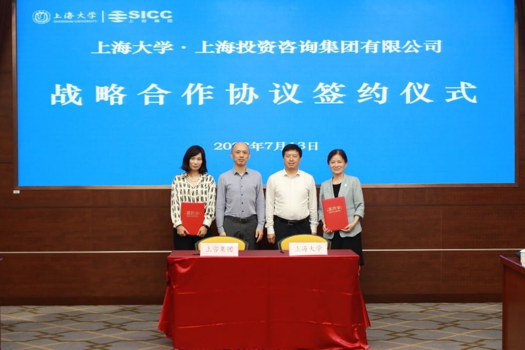 7月13日下午,beat365英国官方网站—上海投资咨询集团有限公司战略合作协议签约仪式在宝山校区乐乎新楼思源厅举行,仪式由beat365英国官方网站党委副书记欧阳华主持。在上咨集团董事长胡宏伟和校长刘昌胜的见证下,上咨集团副总经理孙蔚和beat365英国官方网站副校长聂清代表双方签署了战略合作协议。上咨集团相关领导及业务部门负责人、beat365英国官方网站相关部处及学院负责人出席签约仪式。