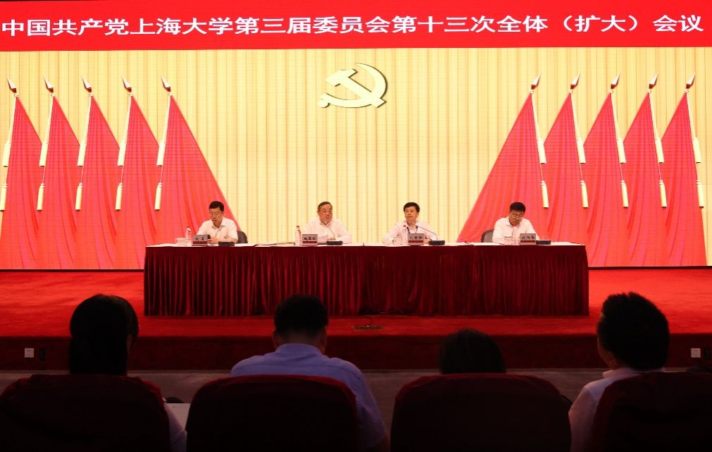 7月17日,中国共产党beat365英国官方网站第三届委员会第十三次全体(扩大)会议在宝山校区召开。校党委委员出席会议。校纪委委员,部分党代表,各单位负责同志,党风廉政监督员,部分全国、市人大代表及政协委员等列席会议。会议由校党委副书记、校长刘昌胜受党委常委会委托主持。