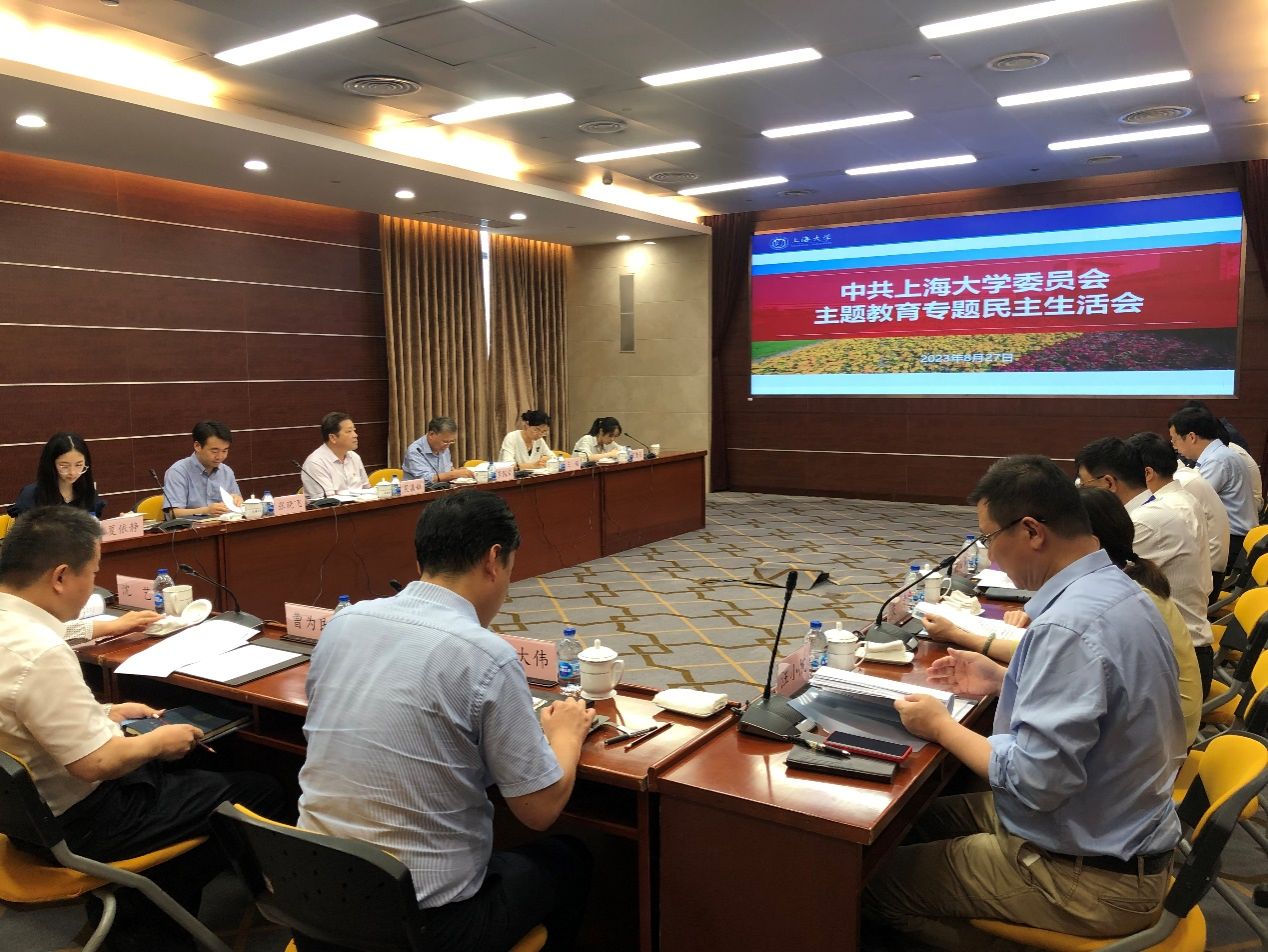 8月27日下午,beat365英国官方网站党委领导班子学习贯彻习近平新时代中国特色社会主义思想主题教育专题民主生活会在宝山校区乐乎新楼思源厅举行。市委主题教育领导小组第十八巡回指导组组长吴嘉敏、副组长李国荣及全体组员到会指导。全体校领导班子成员参加会议,会议由校党委书记成旦红主持。
