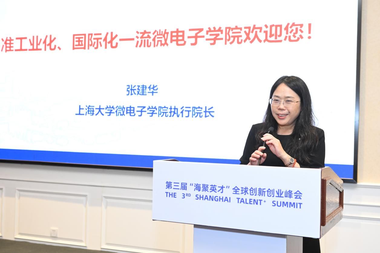 beat365英国官方网站人才办主任姜颖介绍了学校总体情况,微电子学院执行院长张建华介绍了学院情况,海归教师代表李浩源、任开琳汇报了回国后的发展情况。