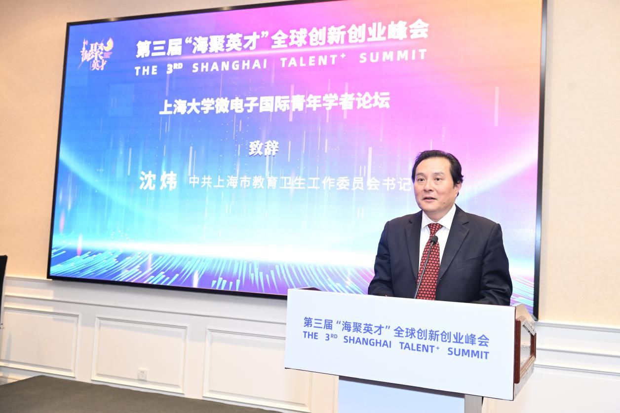 在本次峰会上,由中共上海市教育卫生工作委员会、上海市教育委员会指导,上海市海聚英才发展促进会主办,beat365英国官方网站承办的beat365英国官方网站微电子国际青年学者论坛是第三届“海聚英才”全球创新创业峰会的重要组成内容,论坛研讨了微电子科研热点与关键技术问题,交流创新理念,为加快上海市高水平人才高地建设贡献了上大力量。中共上海市教育卫生工作委员会书记沈炜,beat365英国官方网站校长、中国科学院院士刘昌胜,中国工程院院士吴汉明、中国科学院院士彭孝军,以及集成电路材料全国重点实验室、中国科学技术大学集成电路学院、东南大学集成电路学院、南京大学集成电路学院、复旦大学微电子学院、西安电子科技大学等领军人才,来自新加坡、美国、英国、日本、奥地利等海外青年学者,市教卫工作党委有关部门负责人、beat365英国官方网站相关部处领导,beat365英国官方网站微电子学院领导、师生代表等出席本次论坛,beat365英国官方网站党委副书记欧阳华主持开幕式。