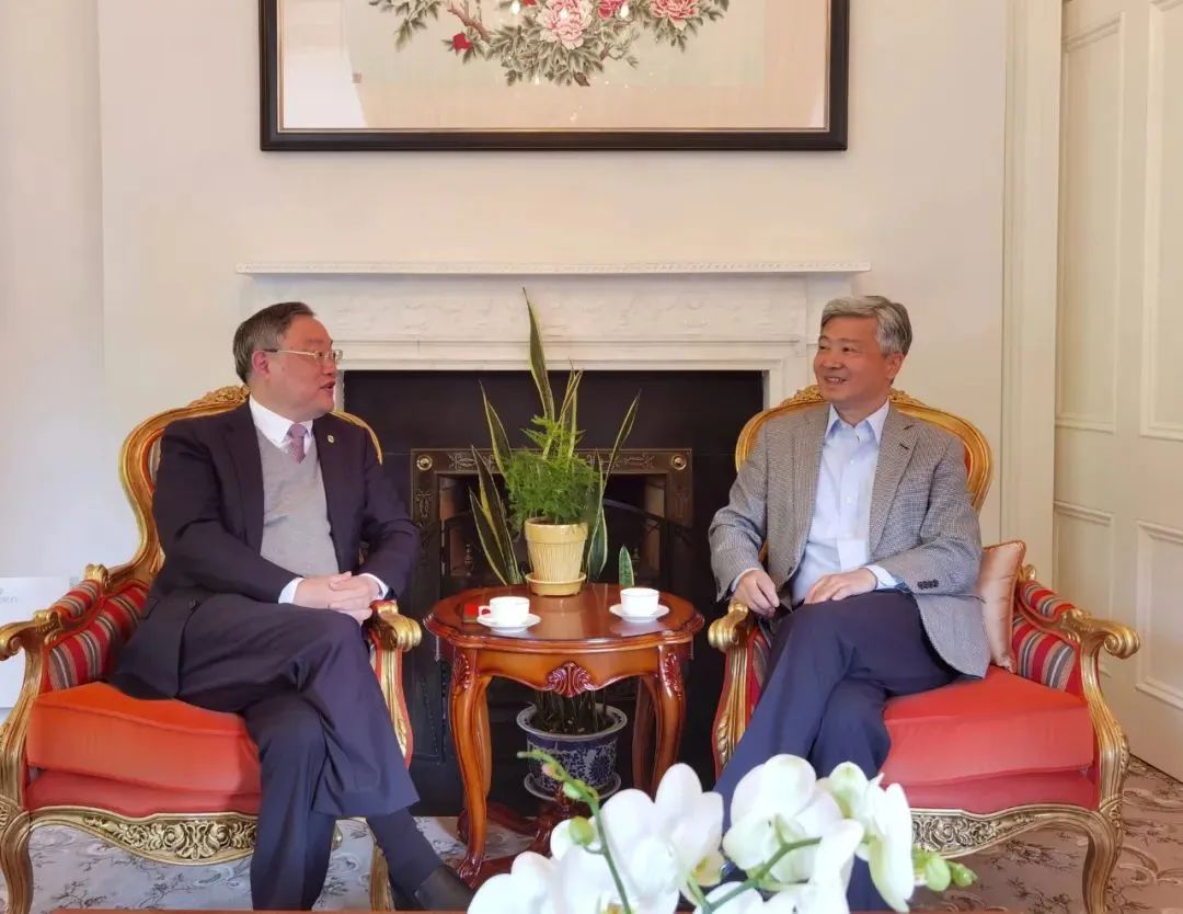 9月21日,beat365英国官方网站党委书记成旦红一行抵达中国驻爱尔兰大使官邸,与何向东大使进行会面,双方围绕beat365英国官方网站与科克大学及爱尔兰地区的合作进行了广泛交流。