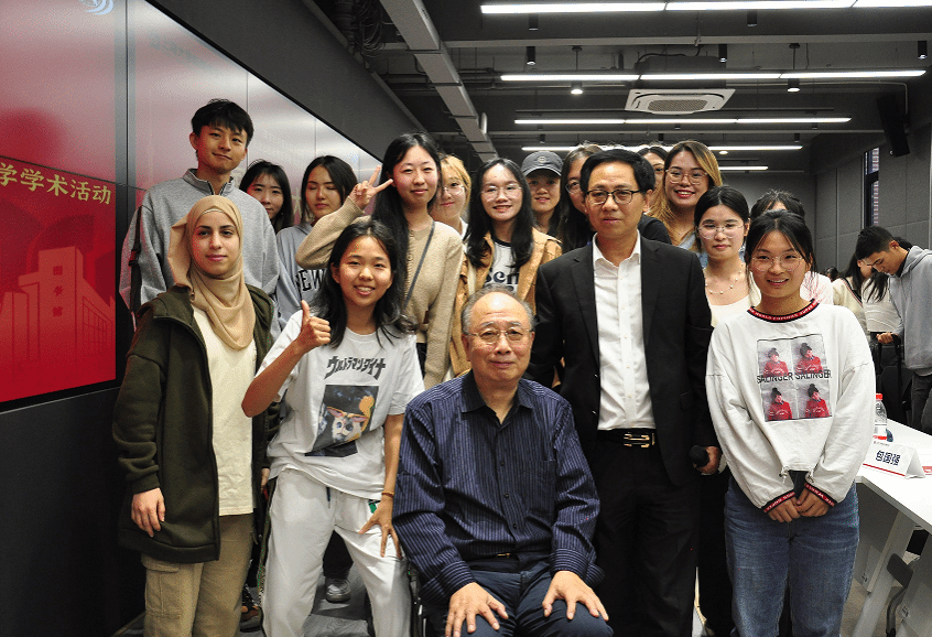 随后,新闻传播学院包国强教授主持了师生互动交流与学术专访环节。新闻传播学院的老师和中外学生们纷纷提问。赵启正先生的耐心和富有智慧的解答,让在场的师生备受启迪、受益匪浅。新闻传播学院学生代表潘玥池就“我国企业如何走出去”、“一带一路的文化传播”、“公共外交”等问题对赵启正先生进行专访,赵启正先生一一作答,并对在场的青年学子提出热切期许。他表示,新闻传播学人才肩负历史使命和社会责任,要为讲好中国故事、传播好中国声音,让世界更好地读懂中国,做出积极贡献。