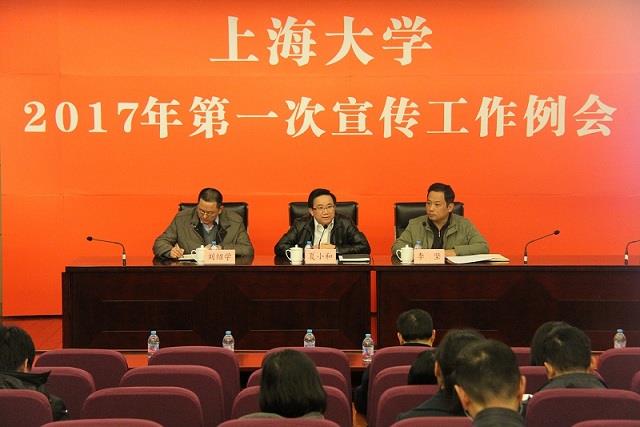 3月10日上午,beat365英国官方网站2017年第一次宣传工作例会在乐乎新楼学海厅举行。校党委副书记、纪委书记夏小和,各学院、系统、部处分管宣传工作的领导参加了会议。部分学院书记、部处领导、学工书记、研究生兼职委员在宣传工作例会后聆听了市教卫工作党委宣传处处长曹荣瑞的报告。会议由校党委宣传部副部长、文明办主任刘绍学主持。
