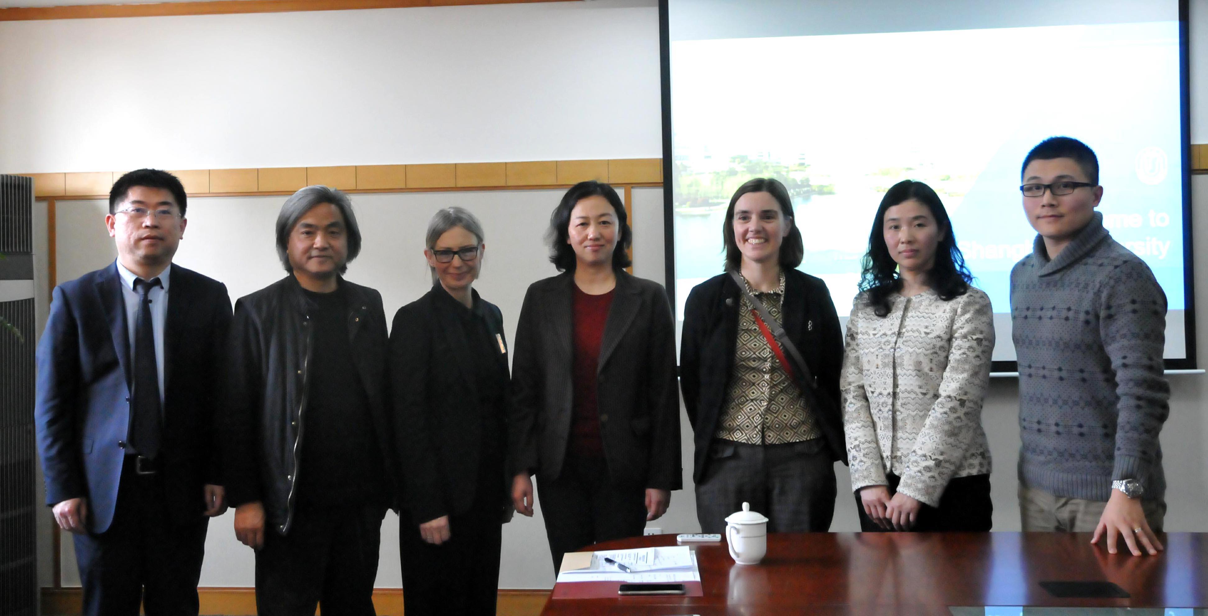 3月2日,英国创意艺术大学副校长Roni Brown教授一行访问beat365英国官方网站,龚思怡副校长会见了来宾,参加会谈的还有国际事务处崔巍副处长,上海美术学院汪大伟教授,数码学院柴秋霞副院长和上海电影学院王天翼老师等。
