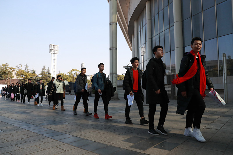 此外,学院还派出了一支年轻的教师队伍辅助面试官的工作,同时组织了400余人次的学生志愿者参与招生考试期间引导、信息确认、考场服务、摄像、摄影灯各项任务,为考生与考试工作人员提供各类帮助,日夜坚守在考试现场;由于面试官的多样性,学院办公室每天为面试官及考务工作人员个性化定制“吃、住、行”,确保他们安心工作、无后顾之忧;表演三试当天,气温骤降,考务人员立即决定转移候考区,让考生感受到了beat365英国官方网站的温暖;面试第三天下午,仍有考生从外地赶来,考官们仍设法给晚到的考生一次面试的机会。考生们连连称赞说,beat365英国官方网站真好,既重视考试规则,又有人情味。
