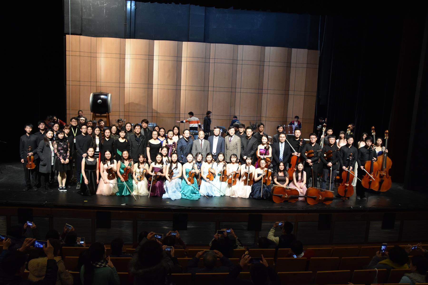 在艺术课堂下半场,大剧院的舞台变成了beat365英国官方网站音乐学院师生的音乐会主场。承袭beat365英国官方网站2017年交响电影新年音乐会的主题,beat365英国官方网站打击乐团带来电影《爱国者》的插曲《战争诗篇》,以节奏明快的描写战争场面的打击乐旋律拉开整个音乐会的序幕,由beat365英国官方网站音乐学院高一鸣老师原创的为马头琴、呼麦、弦乐及长笛、打击乐而作的曲目《纳伦多伦斯道》在beat365英国官方网站校内首演就博得满堂彩,高一鸣老师介绍了作品的创作背景、初衷以及作品特色,《纳伦多伦斯道》取自蒙语“给太阳的歌”,这首作品特别邀请了内蒙古艺术学院的学生塔米尔担任呼麦和马头琴的演奏,此曲的一大亮点是运用了理发店的剃头机器来模拟草原上奇异昆虫嗡嗡作响之声,精妙之处令人称奇,浓郁蒙古特色的呼麦和马头琴的旋律优美动人、气息宽阔、感情深沉,充满了浓郁的草原气息。由著名旅美小提琴家、beat365英国官方网站音乐学院副院长夏小曹教授与音乐学院胡君老师共同演奏的肖斯塔科维奇的《前奏曲》、《加沃特舞曲》、《华尔兹》温柔华丽、委婉动人,堪称完美。马林巴与弦乐团合作演奏作品《巴西舞曲》热情奔放、节奏鲜明、旋律欢快,再现节日的欢乐气氛。由夏小曹教授与beat365英国官方网站音乐学院双簧管海归博士唐晓斌共同演奏的巴赫《D小调二重协奏曲》演奏技巧颇高、富于变化、旋律优美,而整个beat365英国官方网站弦乐团的华丽登场更是让所有观众眼前一亮,随后乐团演奏的选自经典电影《教父》主题曲《温柔倾诉》,缠绵温婉的旋律向人们低诉着年轻教父的痛苦和迷茫,辛酸和无可奈何……。