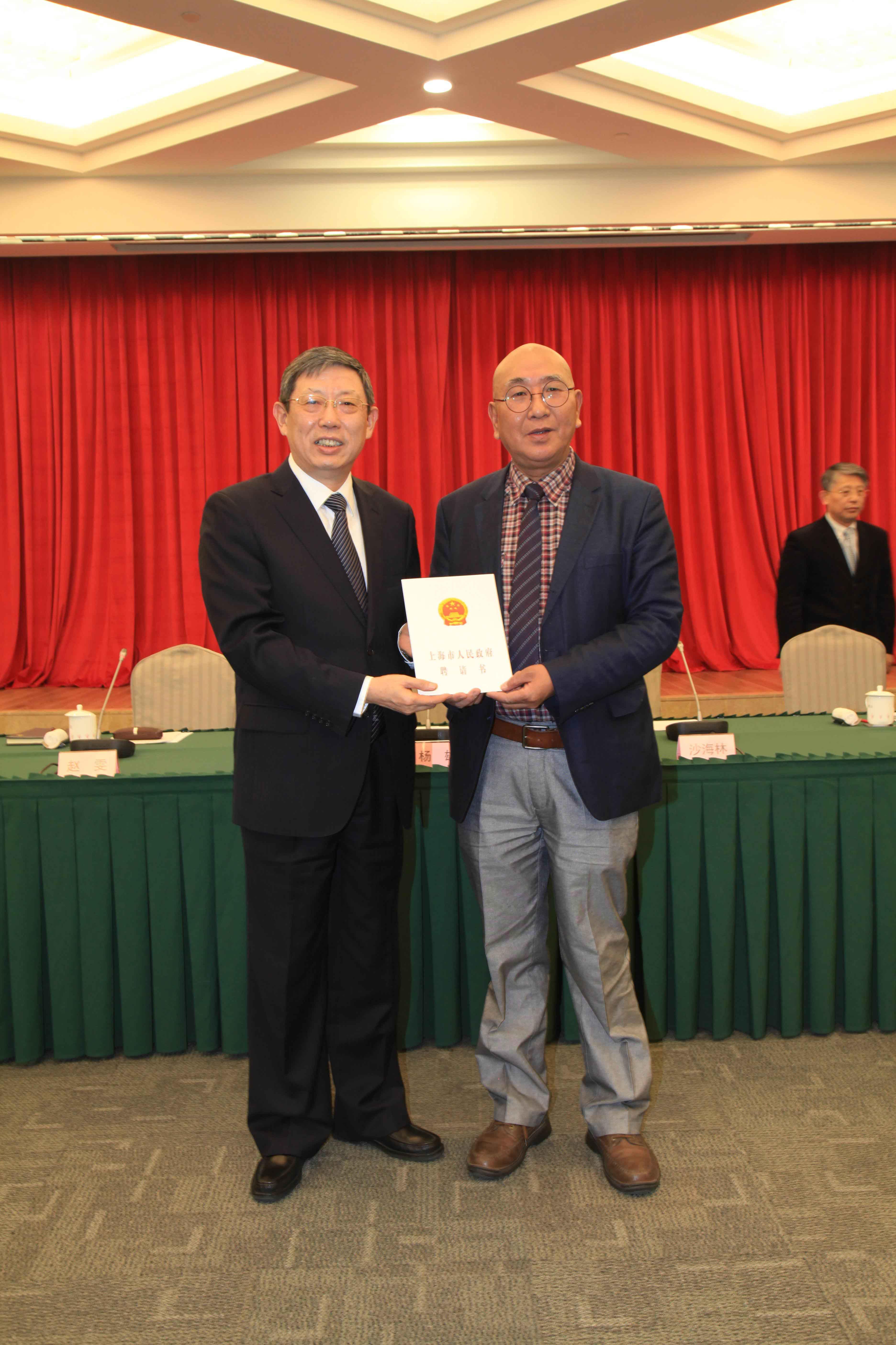 12月12日上午,上海市人民政府举行市文史研究馆馆员聘任仪式,市委副书记、市长杨雄为余秋雨、顾肖荣、韩硕、韩天衡、葛剑雄、黄阿忠、董芷林、王汝刚、朱邦贤、戴小京、王安忆、叶永烈、萧功秦、萧海春等14位新聘馆员颁发聘书并讲话。市委常委、统战部部长沙海林,副市长赵雯出席。余秋雨代表新聘馆员发言。