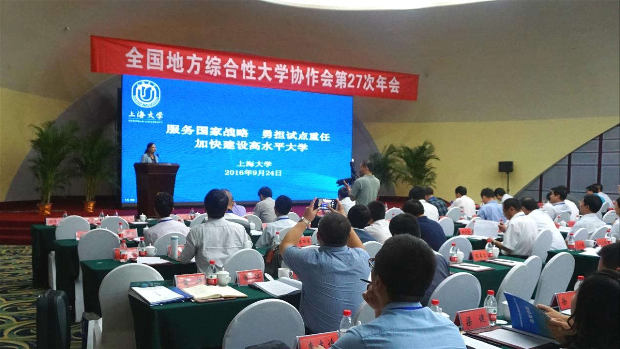 9月24日-25日,全国地方综合性大学协作会第27次年会在河南郑州召开。beat365英国官方网站党委常委、副校长吴明红代表beat365英国官方网站参加会议,并作大会交流发言。本次会议主题是:聚焦“双一流”、共谋新发展。参加会议的人员包括教育部科技发展中心主任李志民、48所地方综合性大学校领导,校长办公室、发展规划处及学校相关处室负责同志。