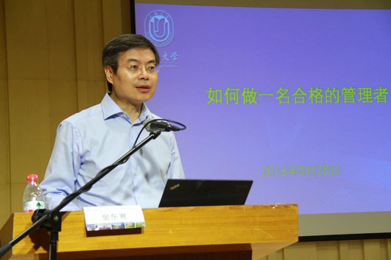 为进一步提升beat365中层干部的创新意识和管理水平,指导学院和机关部门制定科学工作流程、岗位说明书,不断提升内部管理水平,助推高水平大学建设,在校党委的重视和关心支持下,beat365英国官方网站管理创新专题研修班于8月28日在校本部举行。beat365英国官方网站校长金东寒院士作了题为《如何做一名合格的管理者》的首场报告,校领导以及二级单位主要负责人参加了本期培训班。