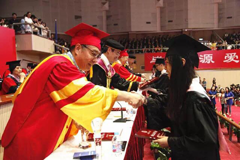 校长金东寒院士以“做一个有梦想并为之不懈奋斗的人”为主题给毕业生寄语。金东寒校长首先对这届毕业生在四年中所取得的突出成就表示赞赏,为毕业生们响应时代号召,奔赴祖国最需要的地方奉献青春而感到骄傲。他举例几位校友奋斗的故事,指出正是这些校友们的努力拼搏,铸就了上大的光荣,希望毕业生们要坚定自己的出身自信。他希望毕业生们每个人都能有自己的梦想,在实现梦想的道路上,既要仰望星空,又要脚踏实地,要养成终身学习的习惯,做事要讲究方法,要坚忍不拔,绝不轻言放弃,做一个健康、快乐的人。金东寒校长说到:“当全世界的目光都关心你飞得多高时,母校更多的是关注你过得好不好,你们是否快乐。母校当然会为你们事业上的成功而鼓掌欢呼,但更愿意成为你们的加油站和避风港,成为你们永久的精神家园和坚强后盾!”此时,全场响起长时间的掌声。