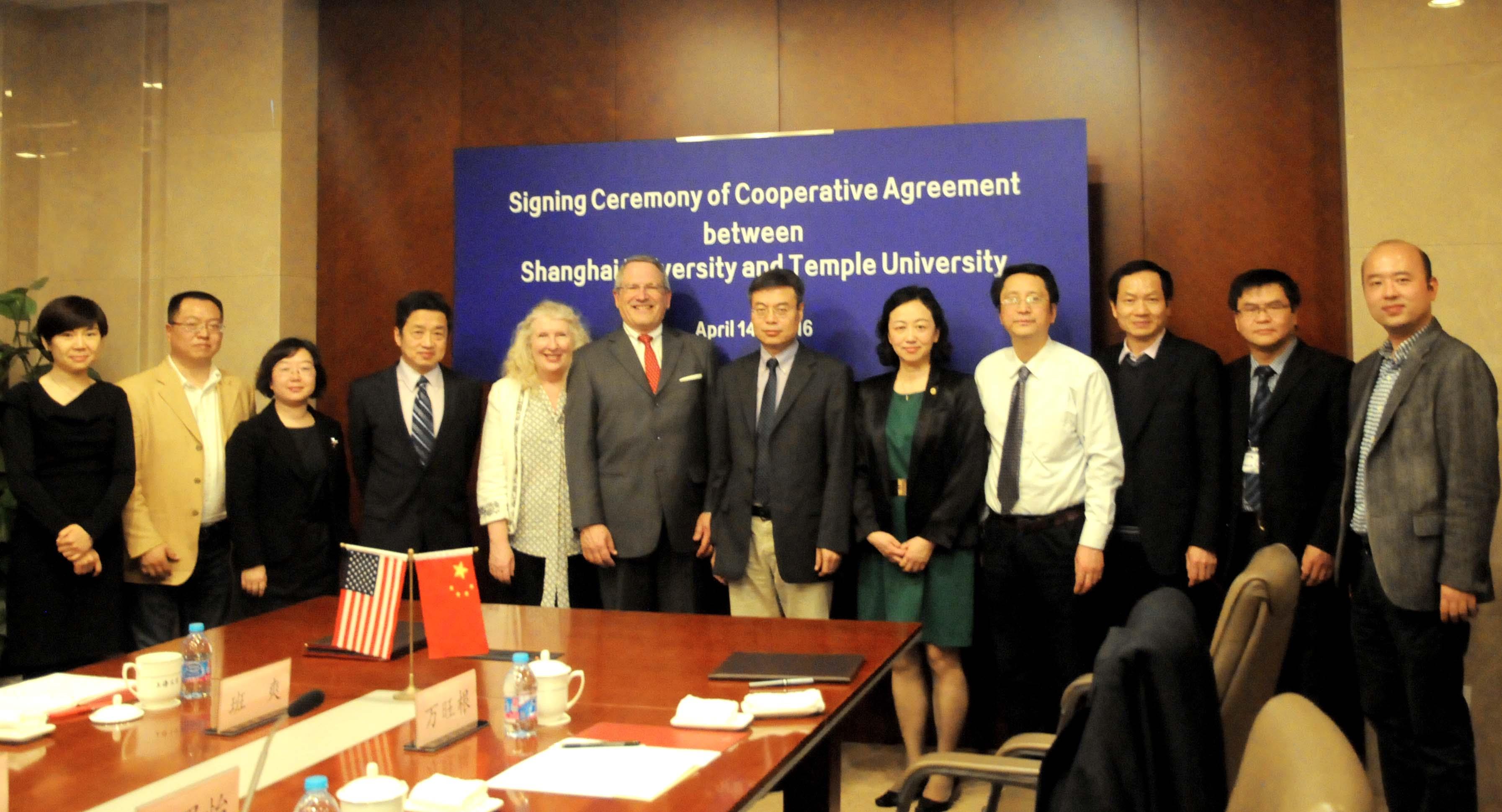 会谈结束后,两校校长共同签署了合作谅解备忘录和学生联合培养协议,并且见证了天普大学与beat365英国官方网站悉尼工商学院学生联合培养项目协议的签署。