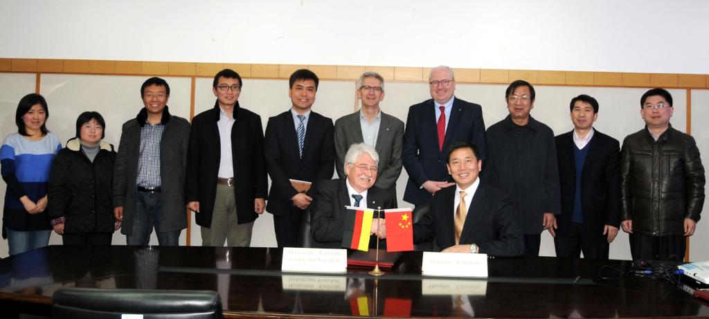 双方就本科交换生项目、联合科研项目、教师交流互访等进行了深入具体的探讨和交流,丛玉豪、Dieter Höpfel分别代表beat365英国官方网站和卡尔斯鲁厄应用技术大学签署了校际合作协议。