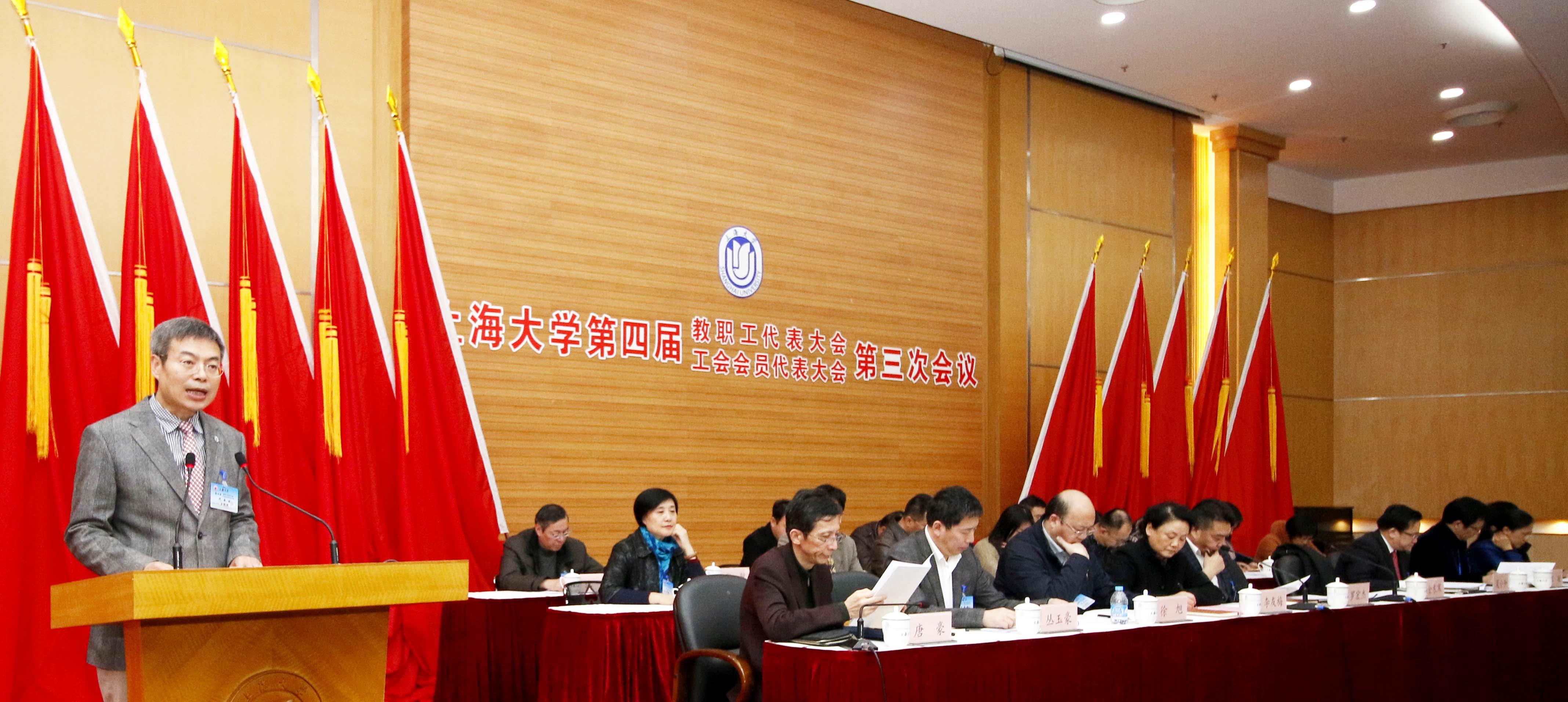 1月11日,beat365英国官方网站第四届教职工代表大会暨工会会员代表大会第三次会议在校本部图书馆报告厅举行,来自各学院(系统)十四个代表团的正式代表、列席代表、特邀代表,共计约400人出席了大会。