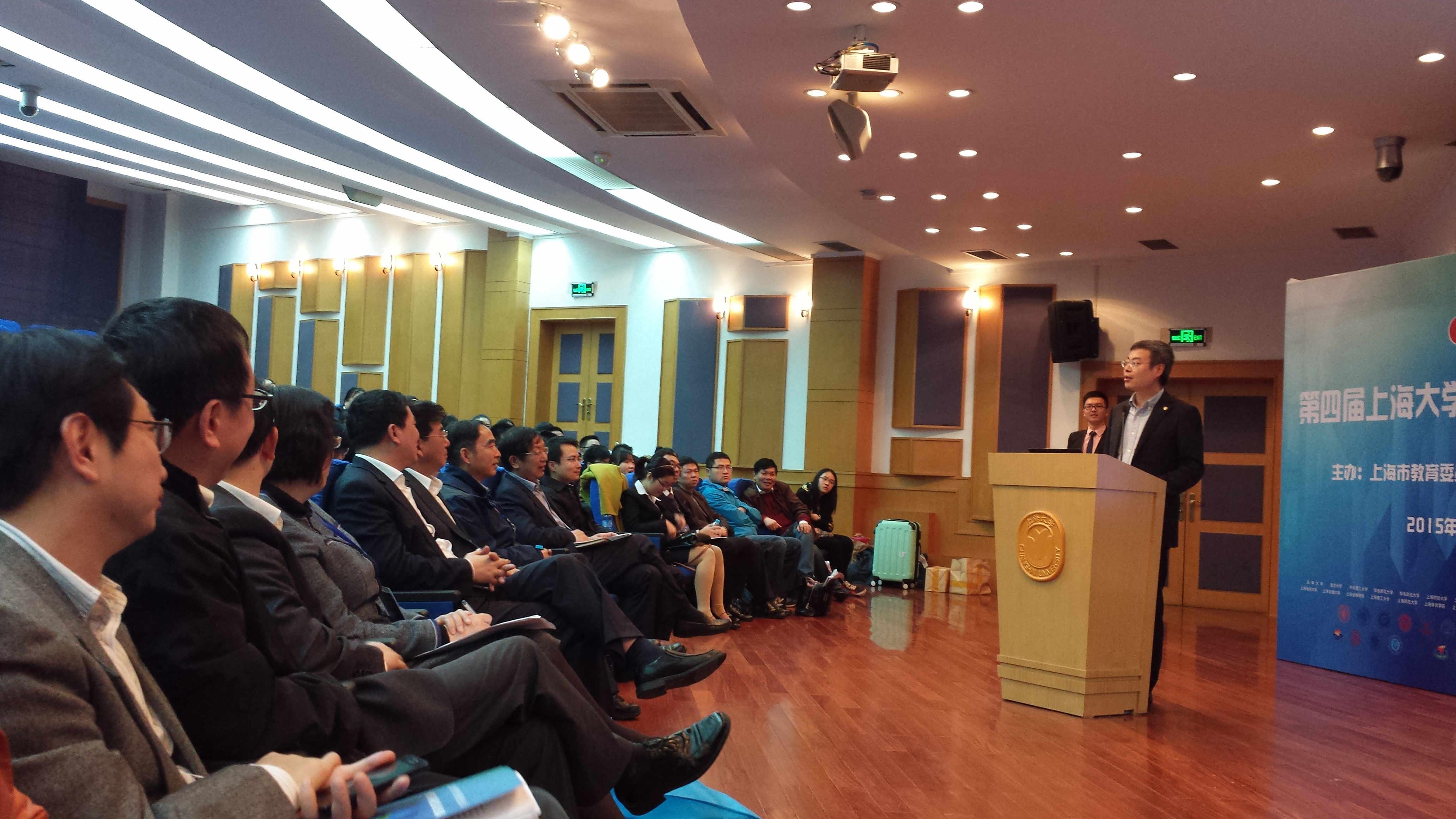 11月21日,第四届beat365英国官方网站生创新创业论坛在beat365举行。该论坛由上海市教委主办,由beat365英国官方网站承办。上海市教委副主任袁雯、高教处处长桑标、高教处副处长傅建勤,beat365英国官方网站校长金东寒、副校长丛玉豪等出席论坛。上海市各高校领导、参与“beat365英国官方网站生创新活动计划”的导师和学生等参加论坛。