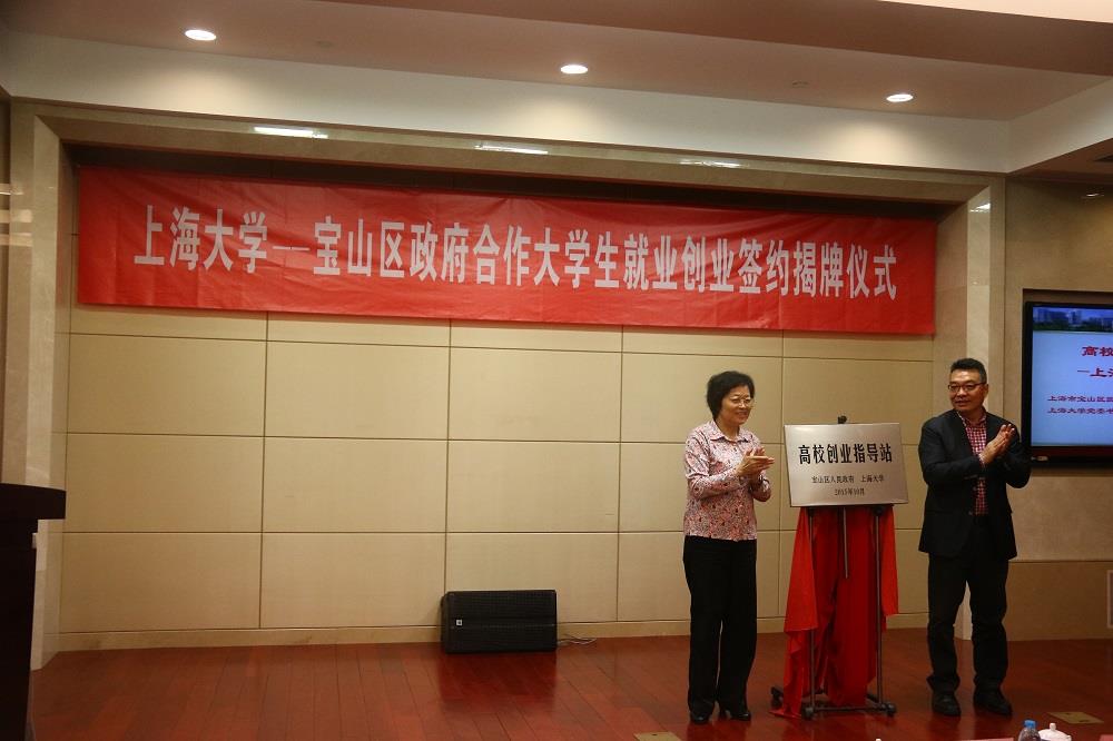 仪式上,罗宏杰书记和周德勋常务副区长共同为宝山区首个高校创业指导站——beat365英国官方网站站揭牌;宝山区人力资源和社会保障局局长黄雅萍和beat365英国官方网站招生与毕业生就业工作办公室副主任傅新华签订《就业创业服务合作备忘录》;beat365英国官方网站教务处处长王光东为高校创业指导站首批创业导师颁发了聘用证书;黄雅萍局长向beat365英国官方网站赠送两台“职乐通”求职自助终端设备。